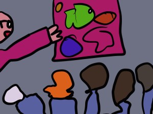 We have a small boy in our Sunday School who regularly comes up with classics. Doing the Ascension last week he produced this drawing. When asked what the funny black things were, he said scathingly that it was Jesus going up past the birds!