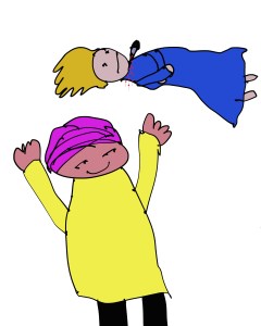 She was talking to an acquaintance at a party the other day who commented that she never wears wraparound skirts as ‘they really make one look like the back of a bus’. X was wearing her rather snazzy homemade wrap-around skirt! Oh well, a very cuddly bus she is too!