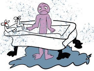 A bit like the poor bloke at school who was playing the fool jumping from bath to bath and missed the last edge and landed in the bottom taking the base with him to the floor. He did look silly standing on the floor with bits of bath (and water) all around him.