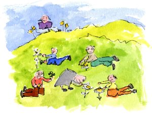 I’ve managed to find time to do a wild flower course one evening a week, mainly because a friend wanted to do it and I went to keep her company. Most of it was far too technical for me (memories of school biology lessons flooded back!) but I enjoyed seeing all the slides the lecturer showed us, and the field trips were good. One beautiful summer’s evening, we went to see a preserved wild flower meadow. After about an hour of being told all the Latin names of everything we were seeing, my brain just seized up! So while all these really enthusiastic botanists were crawling around on their hands and knees examining every last petal and leaf, I just sat and admired the wonderful views.