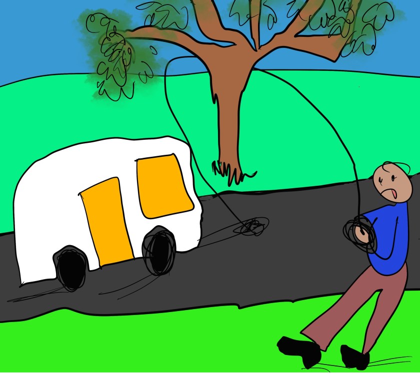 We had great manoeuvres yesterday getting the van out from its ‘hard standing’ as I had to take it for a warrant of fitness test. Putting it back is easier being downhill – except that at one critical moment the jockey wheel fell out having been unscrewed too far and I was left holding the front up until X could put it back!